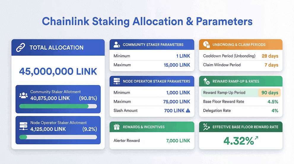 Chainlink’s staking is often discussed as part of its security and incentive design. Chainlink Staking v0.2 introduced an expanded staking cap (a fixed pool size) that third parties frequently cite when describing staking participation constraints.