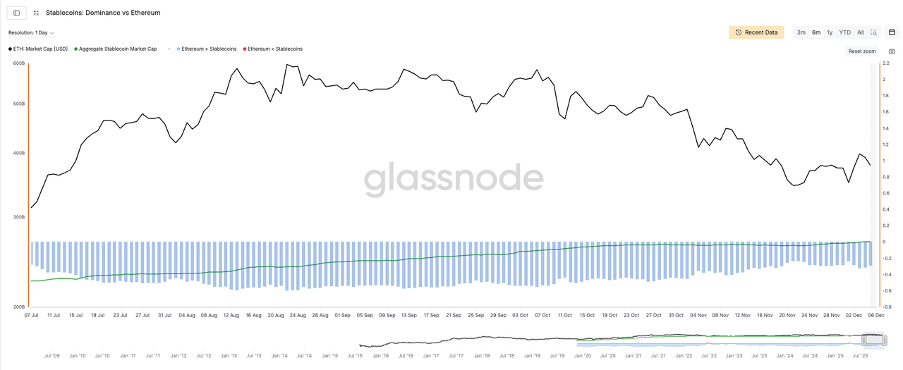 Glassnode data confirms that stablecoin liquidity remains available but largely parked. Dominance continues to skew toward Ethereum, reinforcing its role as the system’s primary settlement and liquidity rail as institutional activity resumes.