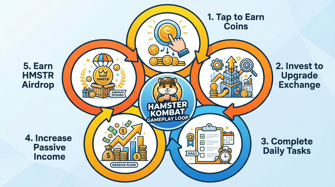 Hamster Kombat 的核心运作是基于点击赚币系统。玩家通过点击仓鼠来赚取币,这些币作为游戏内的货币。玩家越活跃,赚取的币就越多,但这不仅仅是点击游戏。玩家可以将赚到的币用来升级他们的虚拟交易所,这样能够提升收入并增强游戏体验。游戏还包含多种功能,让玩家保持参与并提供额外的赚钱机会。