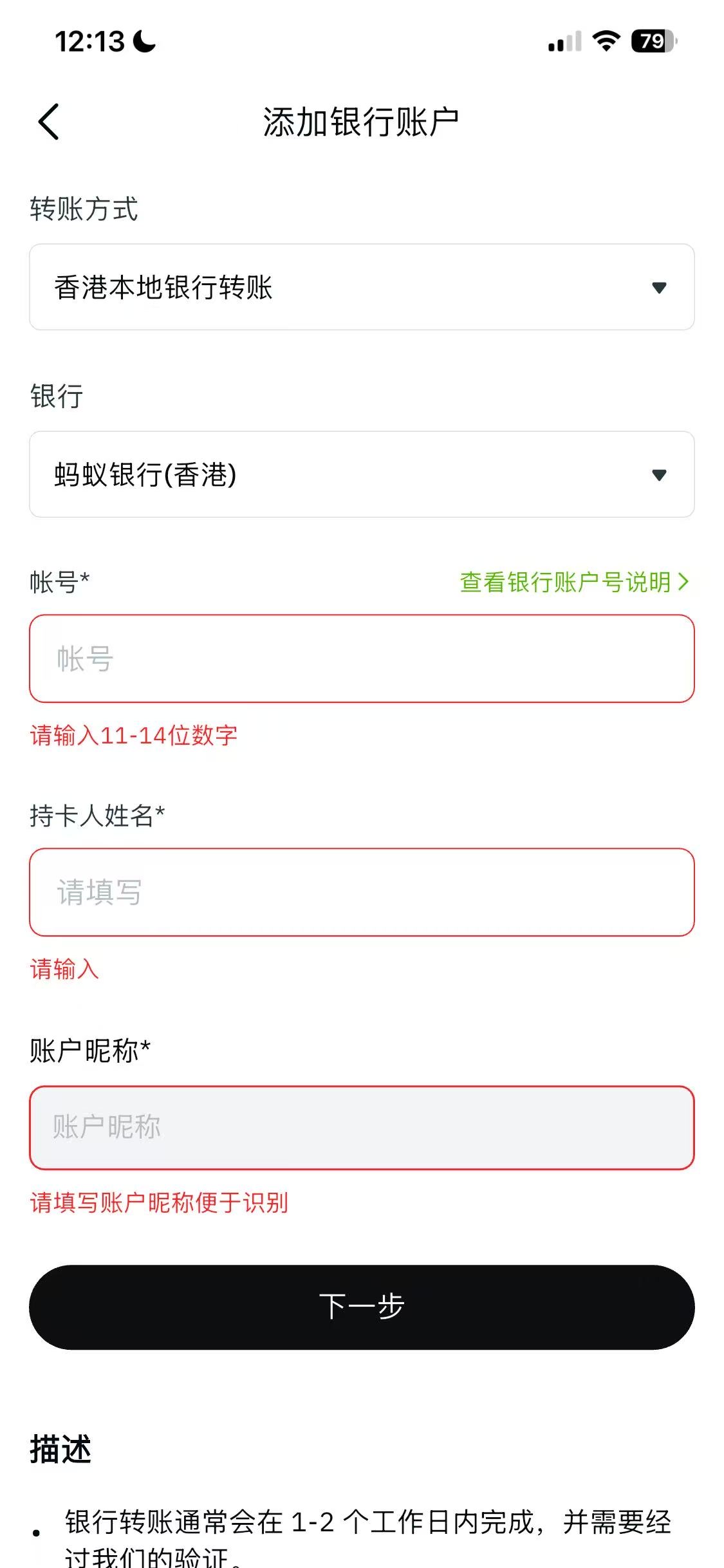 必填参考代码: 在进行银行电汇时,务必在「备注/给收款人的信息」栏位准确填写系统生成的专属参考代码。这是系统识别您资金归属的唯一凭证。