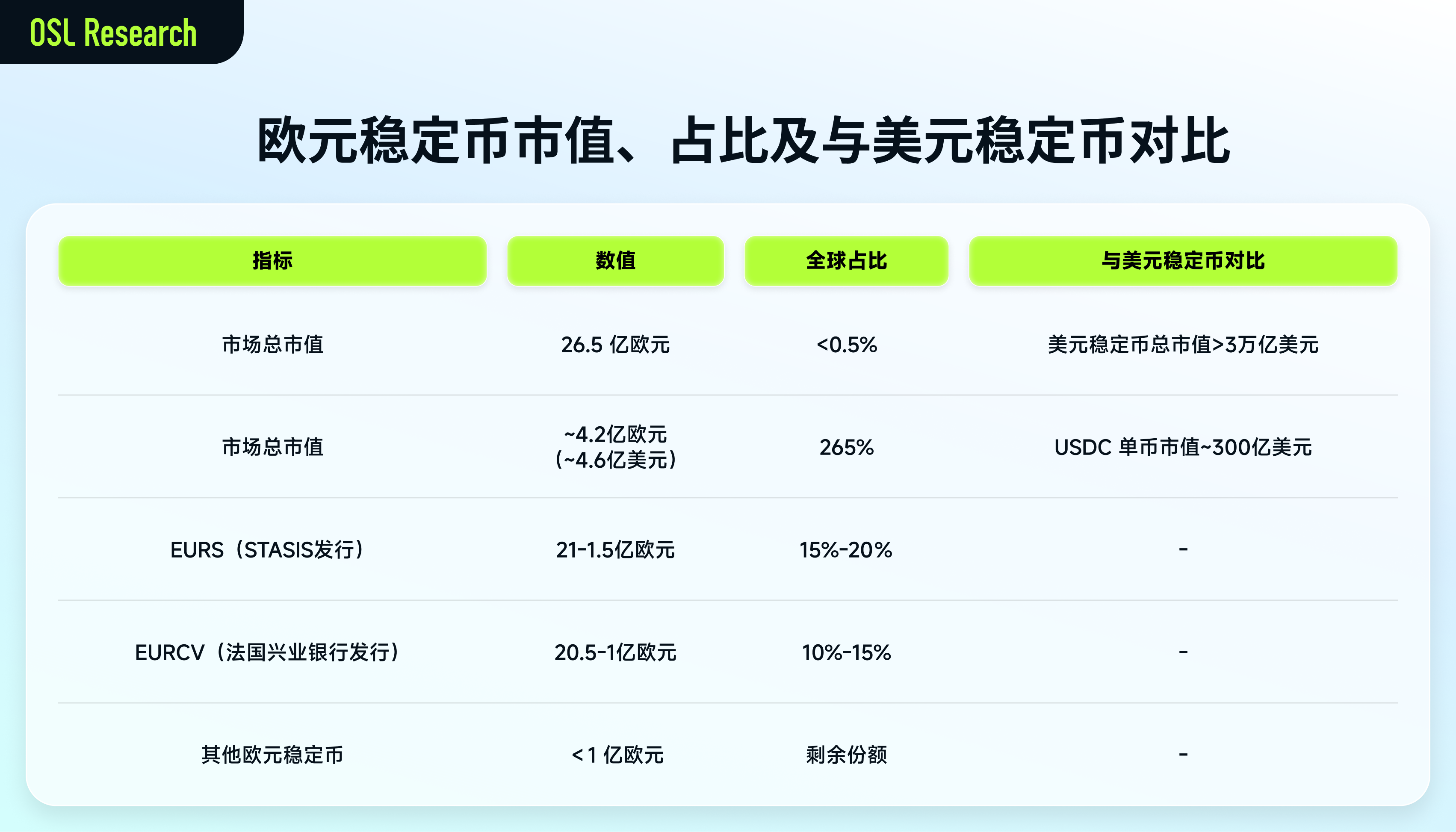 「稳定币支付周刊」 第九期:MiCA 时代下欧元稳定币的市场格局