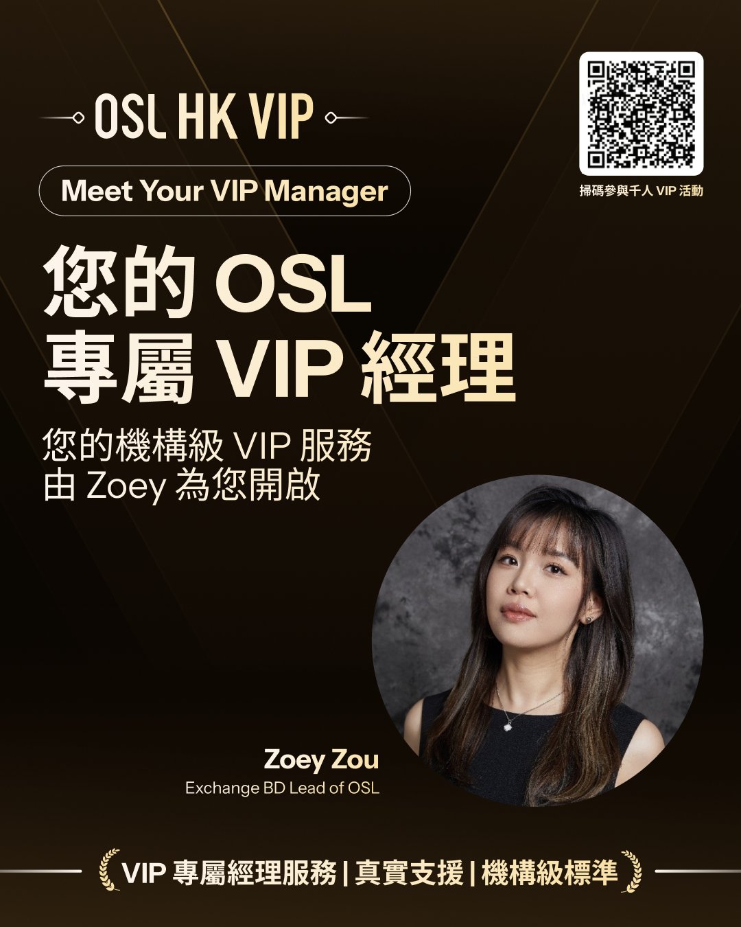 Meet Your VIP Manager: On the occasion of our fifth anniversary, we are opening institutional-level services to provide an exclusive experience. Our official BD Lead Zoey (Telegram: @zoeyzouzoey) will accompany you, providing professional insights to ensure you receive support every step of the way! In addition to contacting Zoey, you can also reach your dedicated VIP manager support through the OSL HK App or via official email from [email protected].