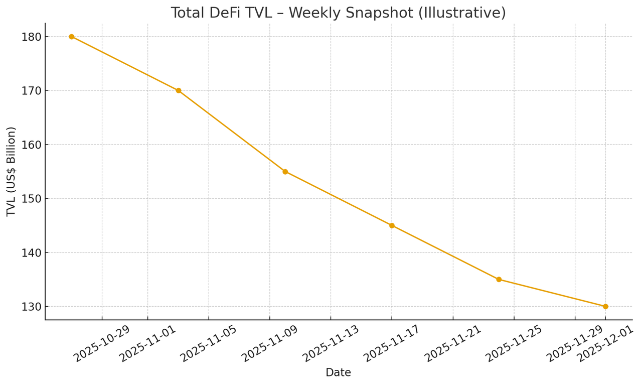 DeFi entered December under sustained pressure, with the sector shedding roughly US$55B in TVL since early October, which is around a 30% decline that largely mirrors the broader crypto drawdown rather than signalling mass capital flight. Much of the contraction reflects asset-price depreciation, not wholesale withdrawals, though flows do show a clear rotation away from high-leverage and complex strategies toward simpler, collateral-backed structures.