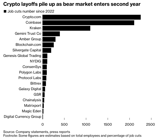 Here are some of the crypto job cuts announced or reported so far in 2023: