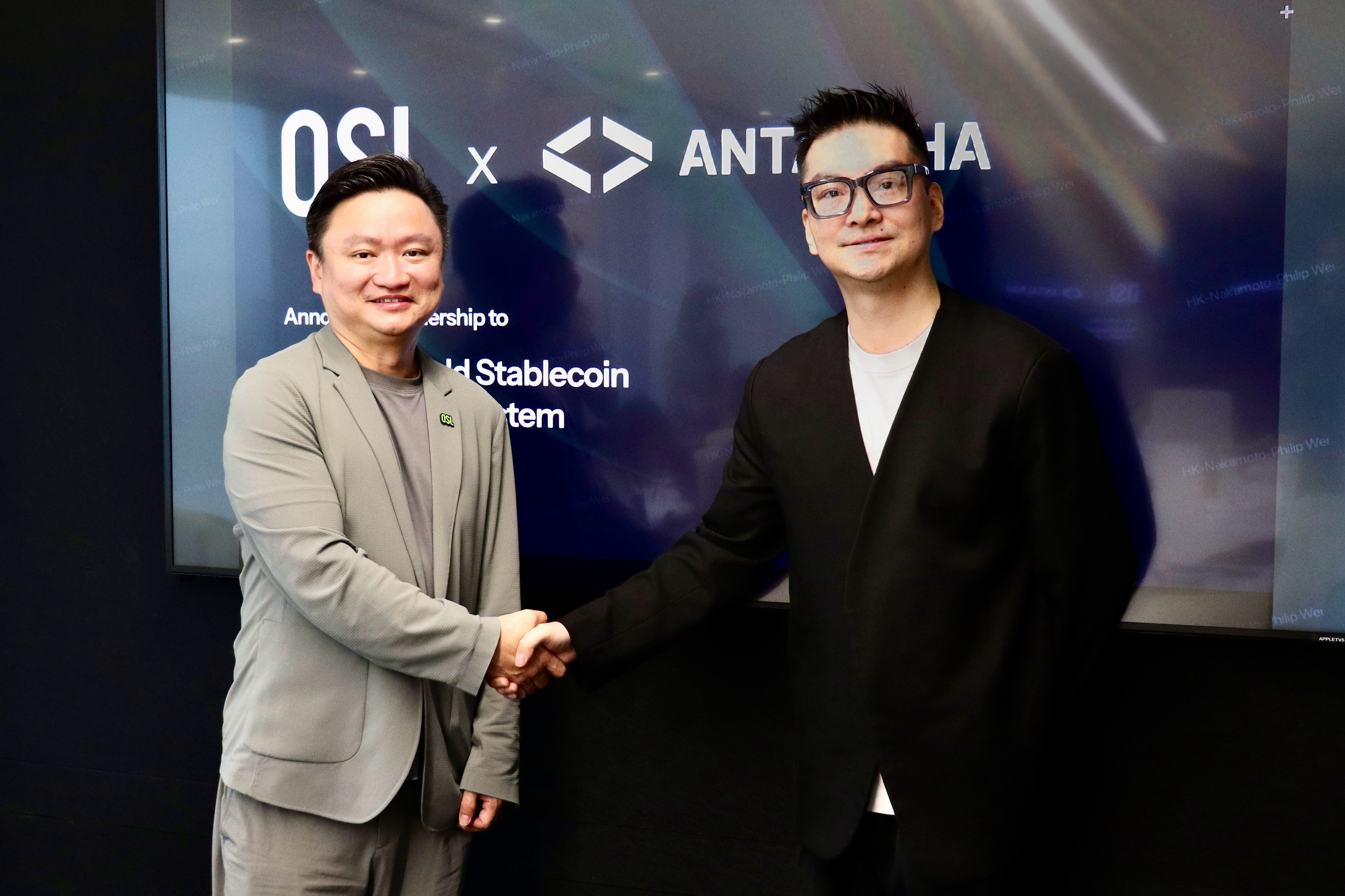 OSL Group and Antalpha announced a partnership on December 18 to jointly explore "Digital Gold" solutions and financial service innovations based on gold stablecoins. Pictured (from left): Eugene Cheung, Chief Commercial Officer of OSL Group, and George Chow, Managing Director of Antalpha. (Image Credit: OSL Group)