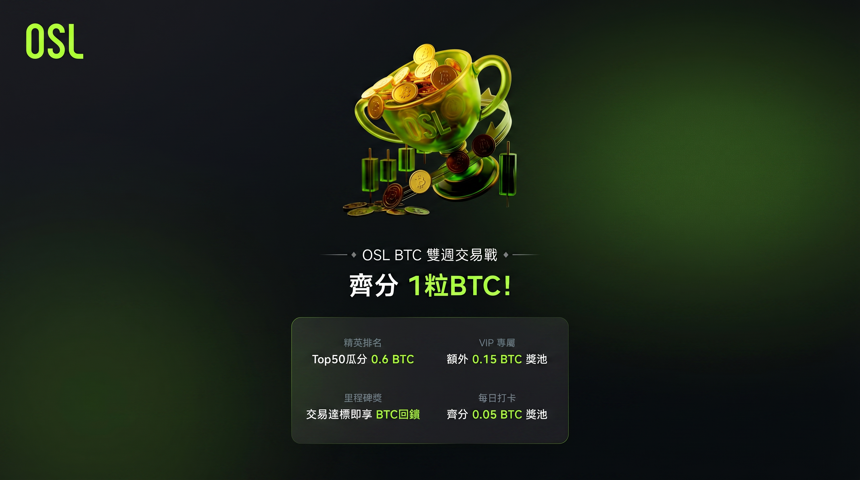 【限時 14 天】 OSL 首期雙週交易戰打響:最高獨攬 0.12 BTC!