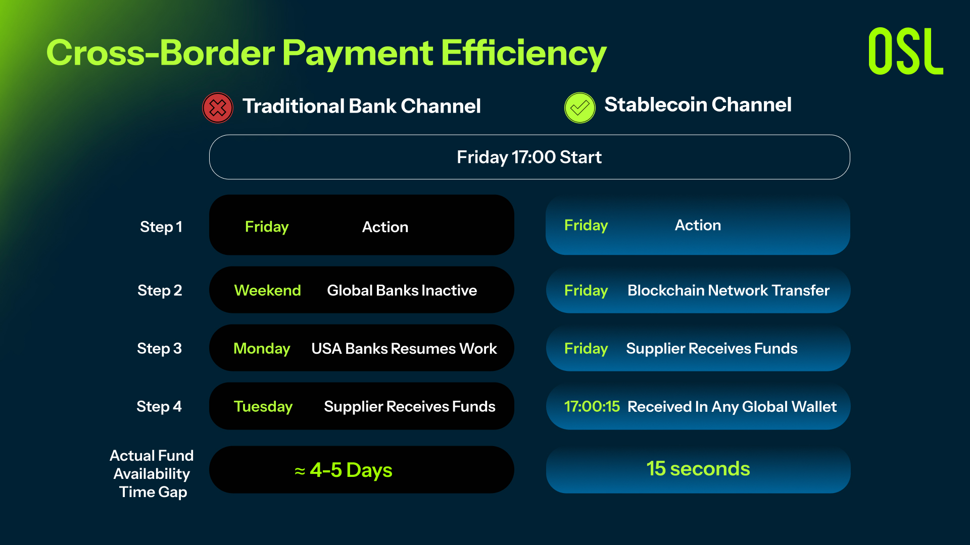 上述四項限制並非個別銀行的技術落後,而是全球傳統金融基礎設施在時間制度、地理分佈、清算模式以及合規執行機制上的系統性約束。它們共同構成了現代企業現金流管理中最難逾越的「結構性延遲壁壘」,也是穩定幣與區塊鏈結算體系得以快速取代傳統渠道的根本驅動力。