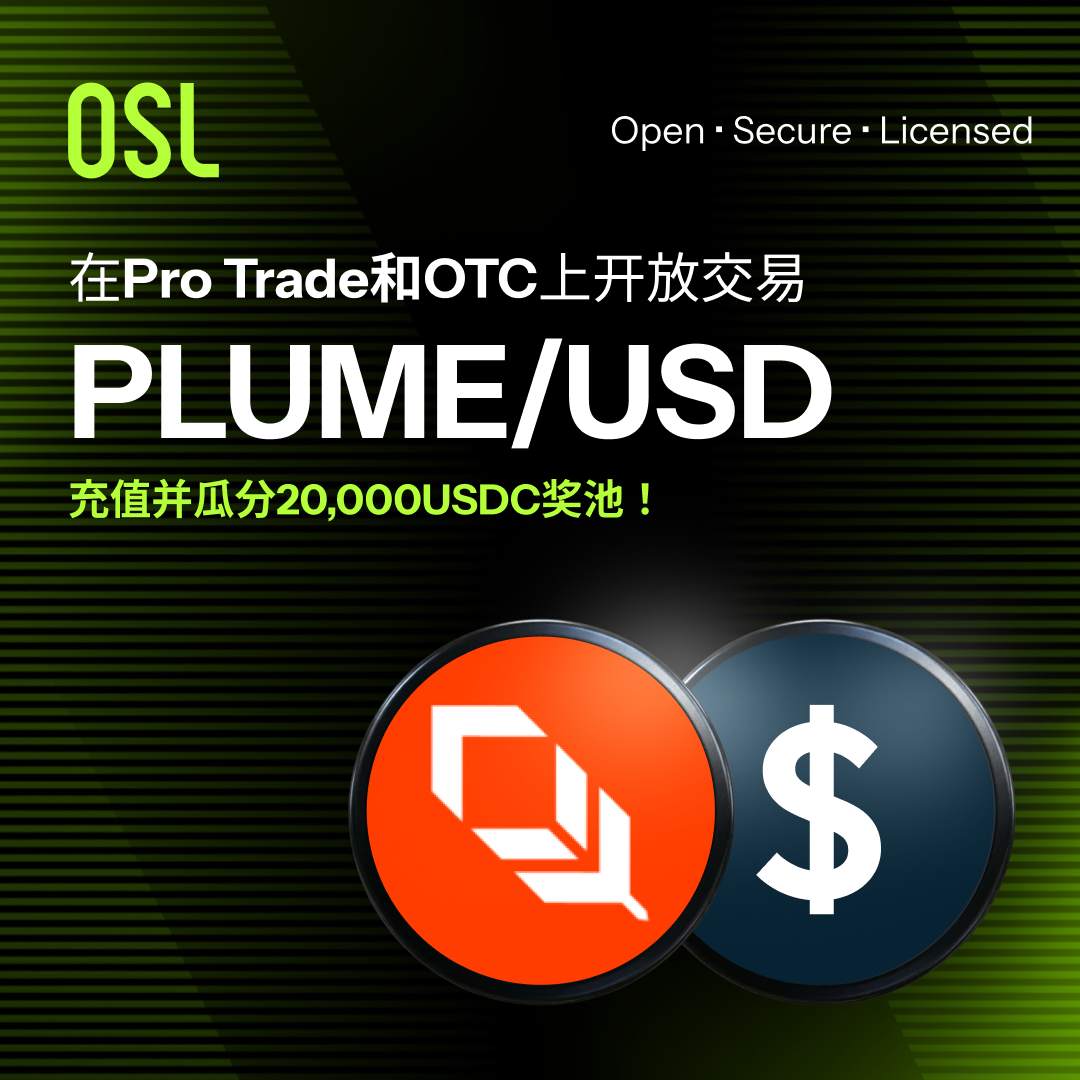 OSL Global 新币上线:Plume(PLUME) - 充值并瓜分20,000USDC奖池!(新用户专享)