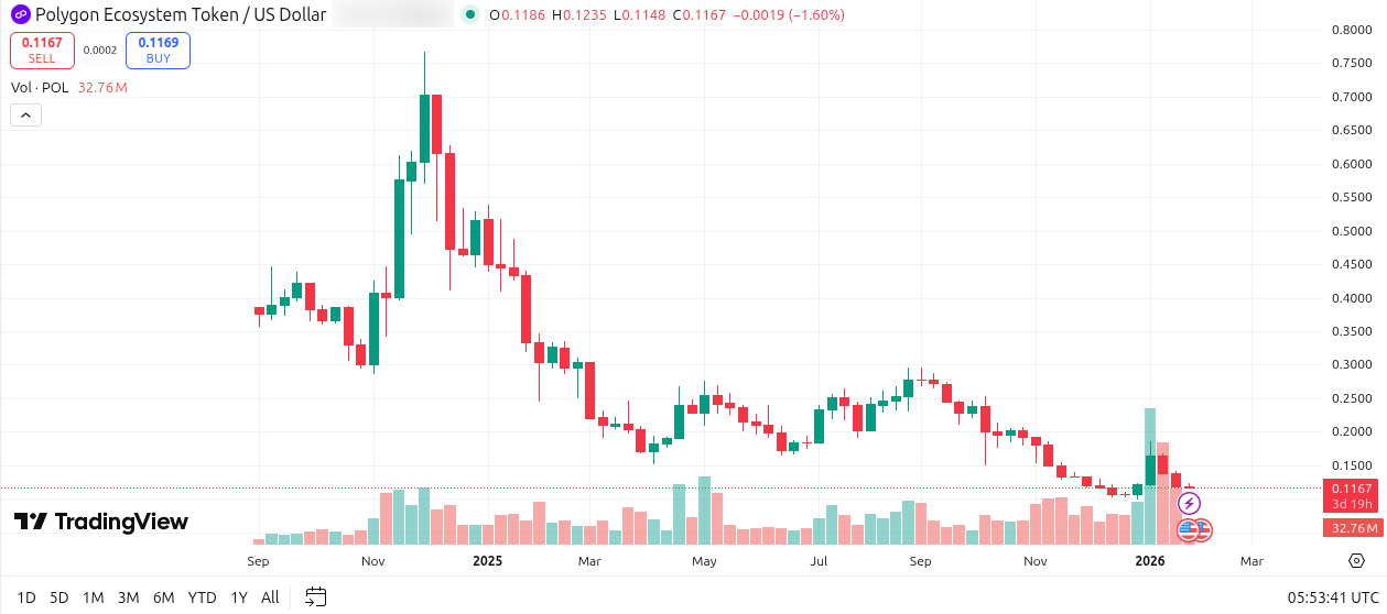 数据更新可能存在滞后。建议在 TradingView 等专业平台确认代码是否已更新为 POL,以确保信息的准确性。
