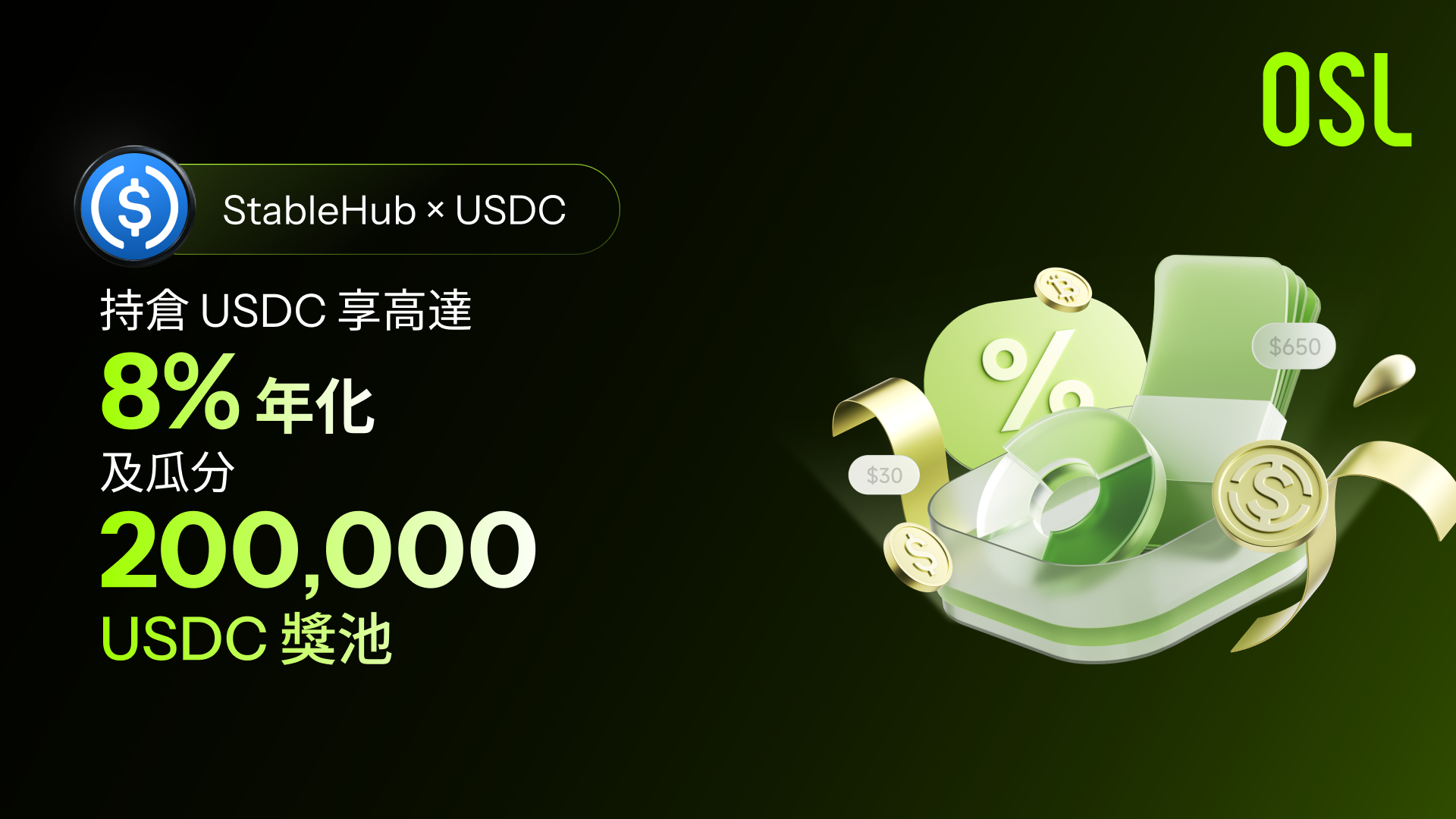 USDC (USDC)正式加入 StableHub 獎勵嘉年華,享最高8%APR!