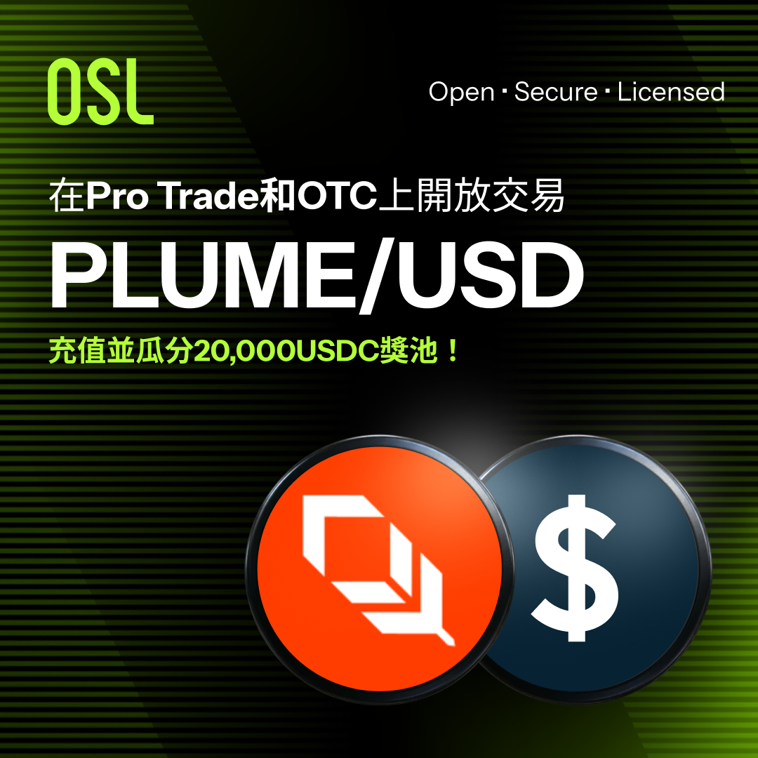 OSL Global 新幣上線:Plume(PLUME) - 充值並瓜分20,000USDC獎池!(新用戶專享)